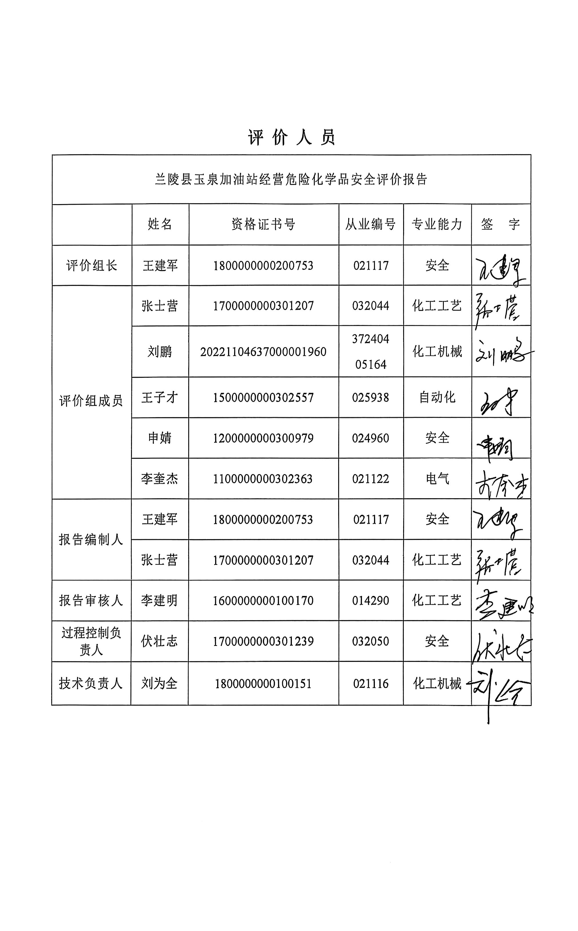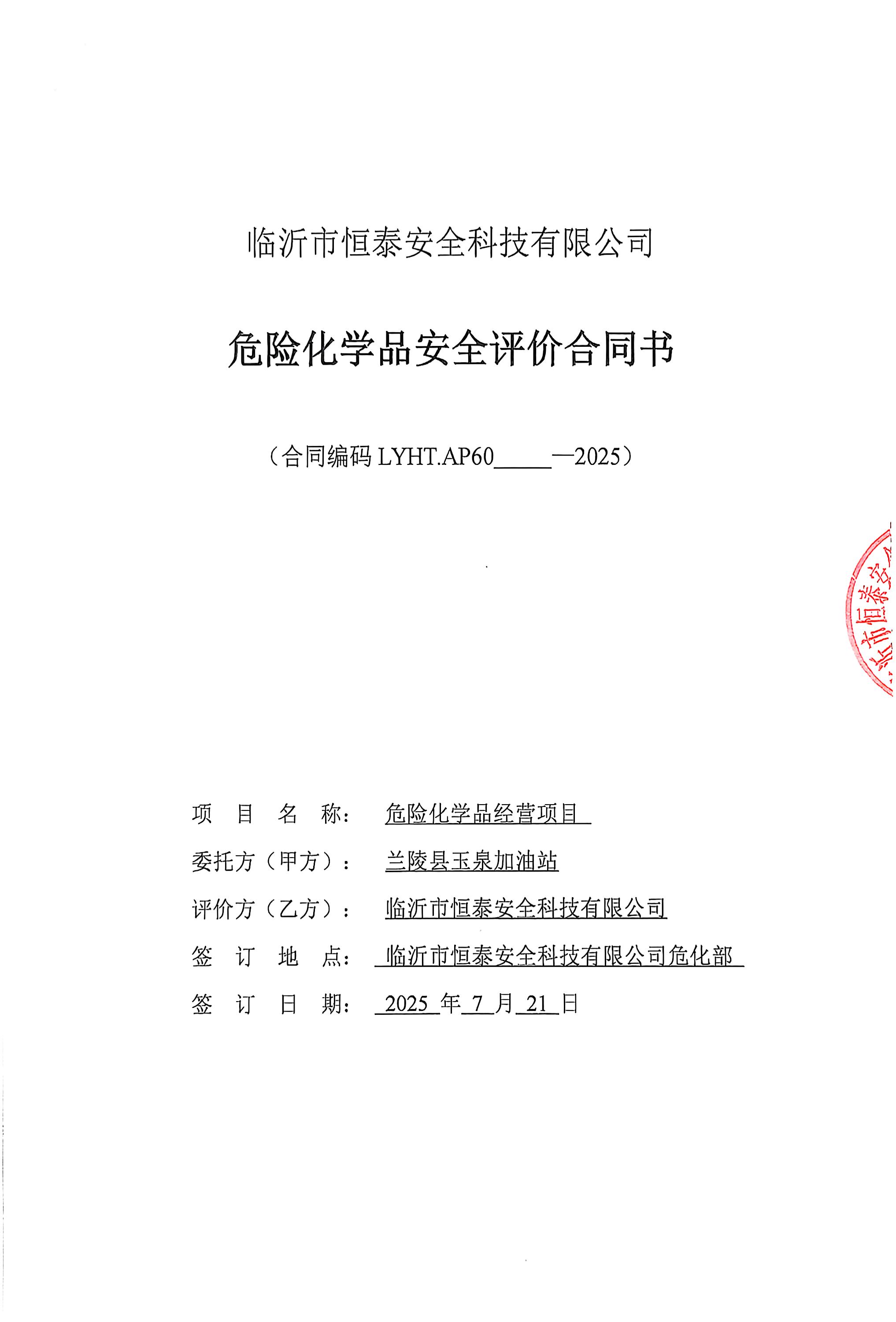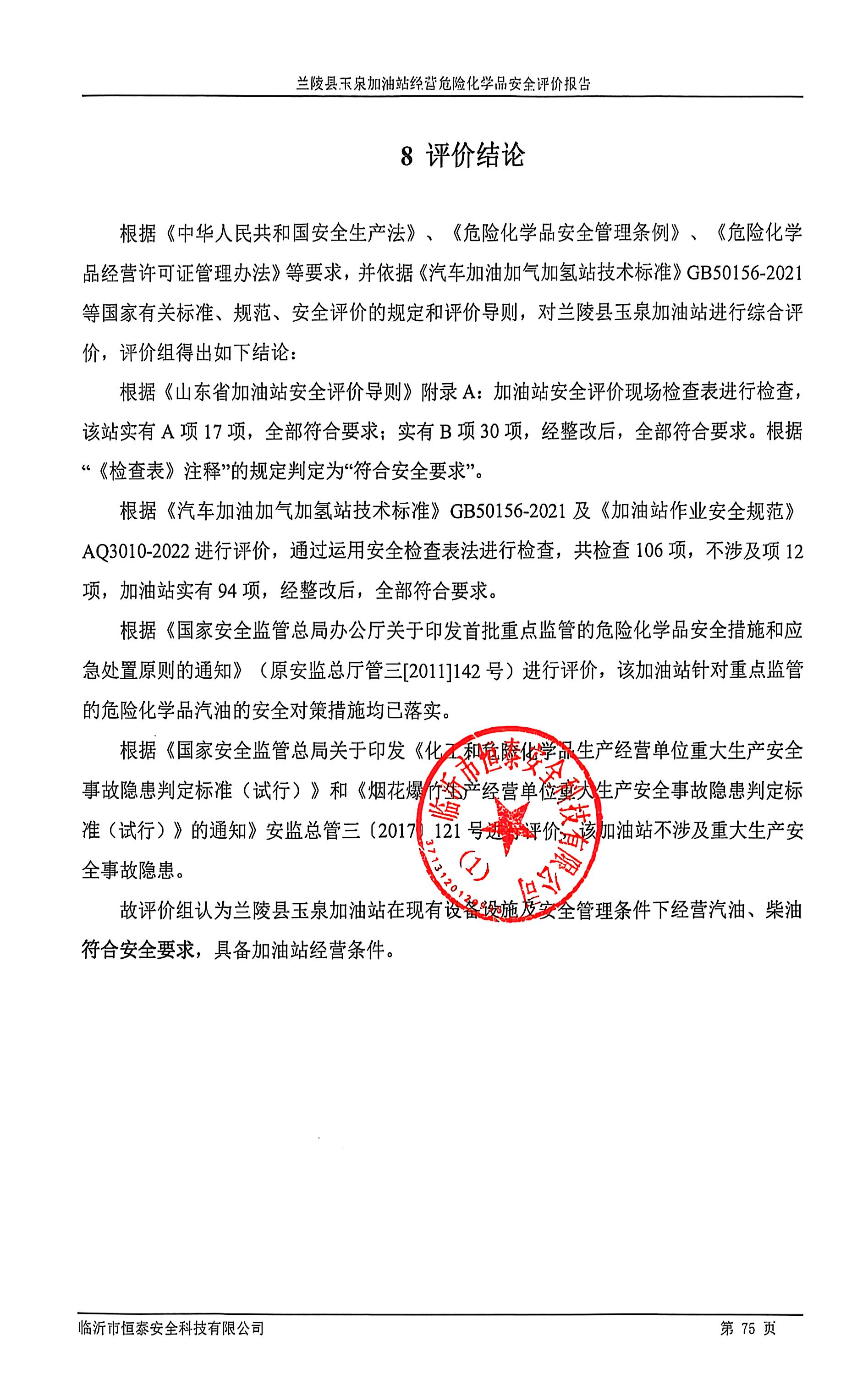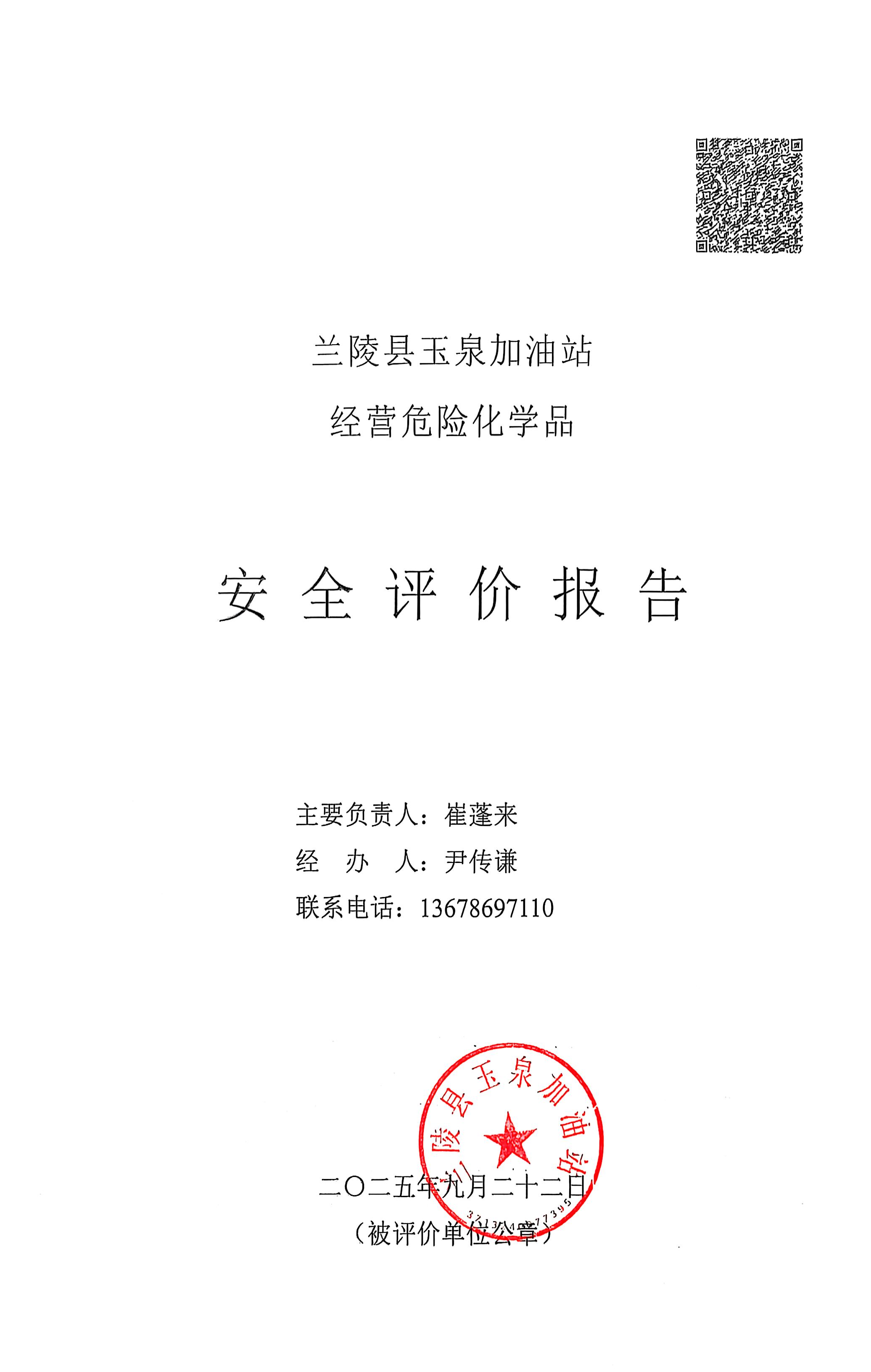兰陵县玉泉加油站经营危险化学品安全评价报告 |