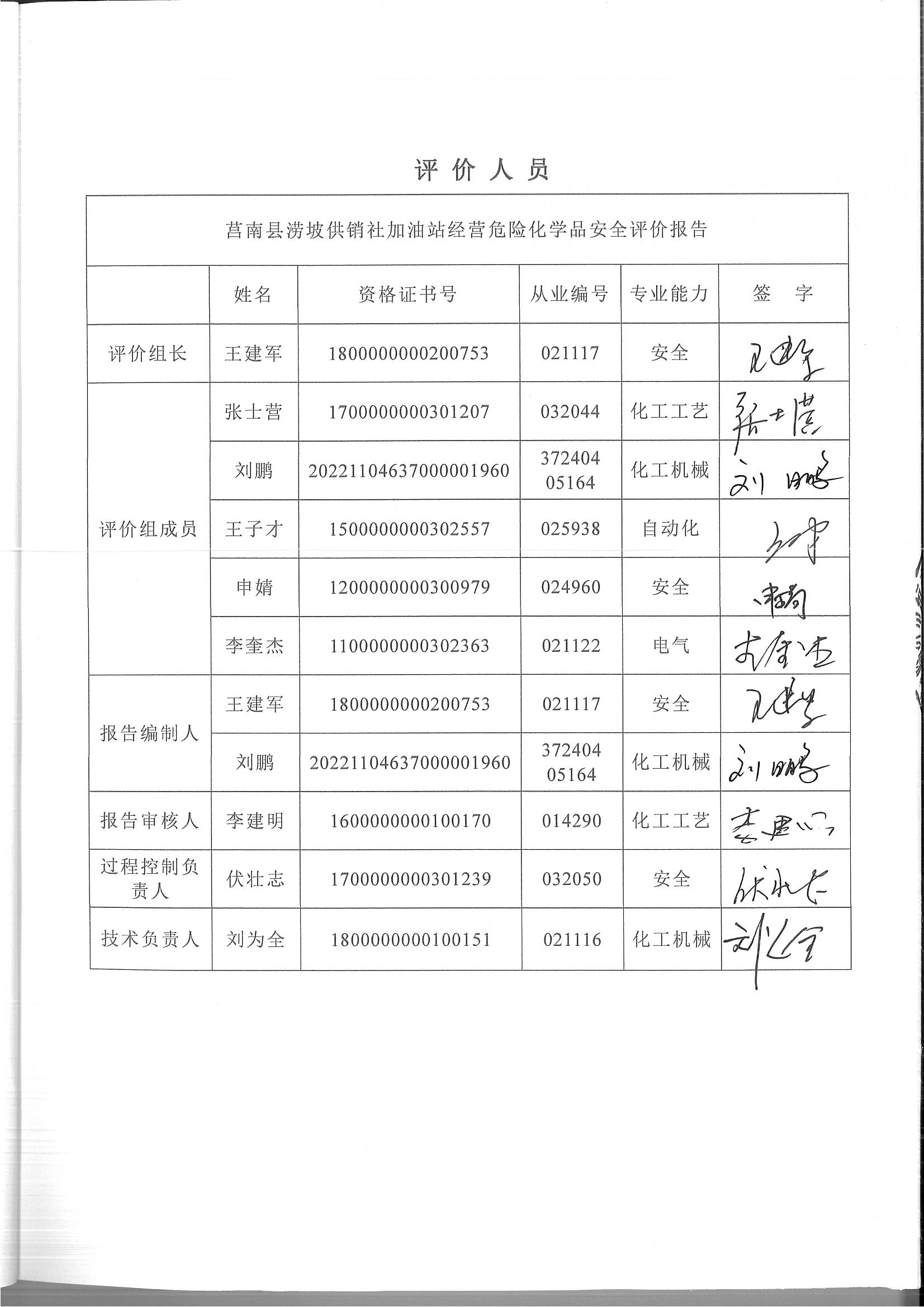 | 安全评价项目组长 | 王建军 | 报告编制人 | 王建军、刘鹏 |