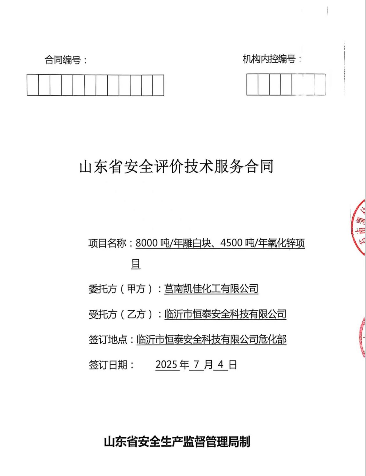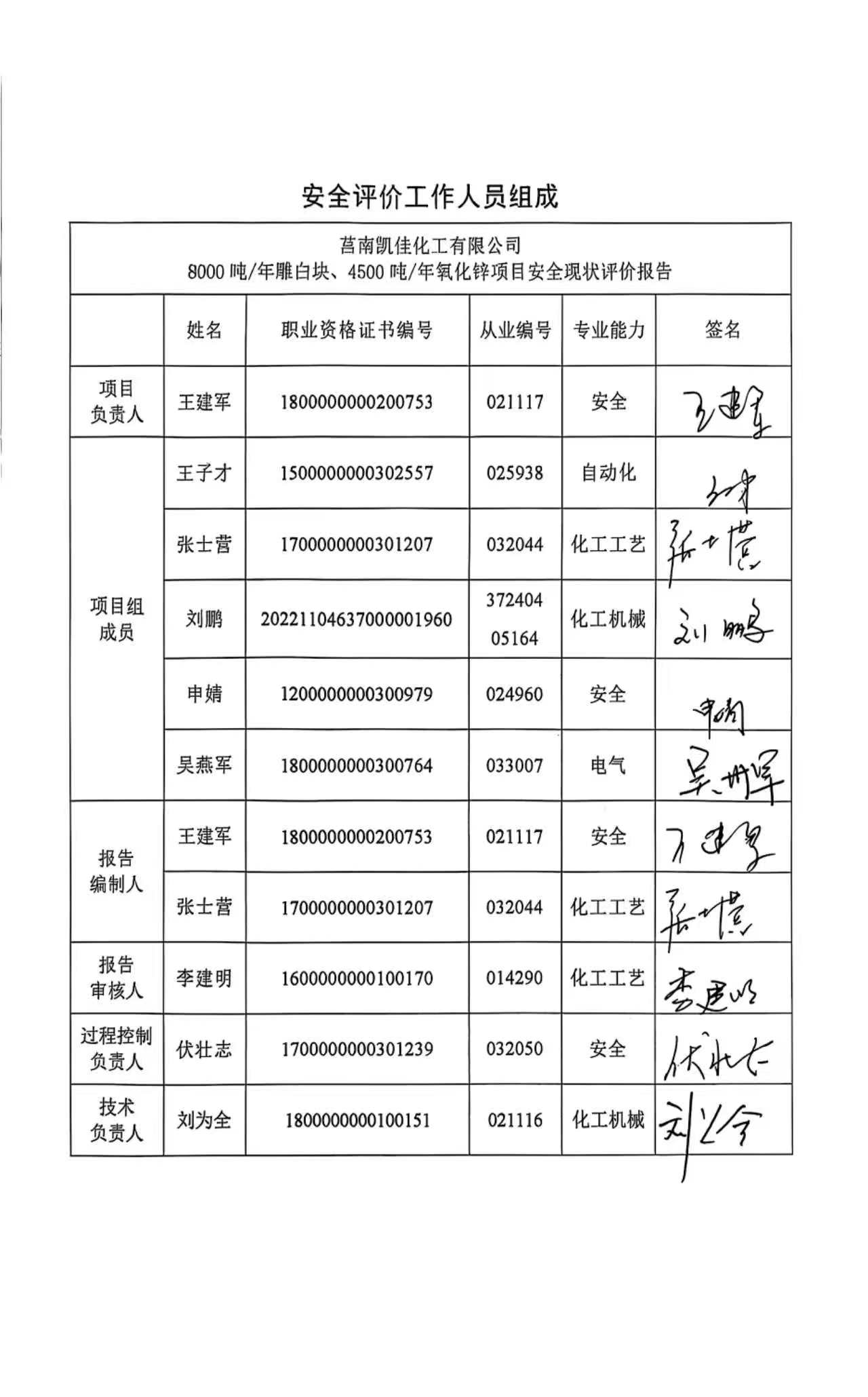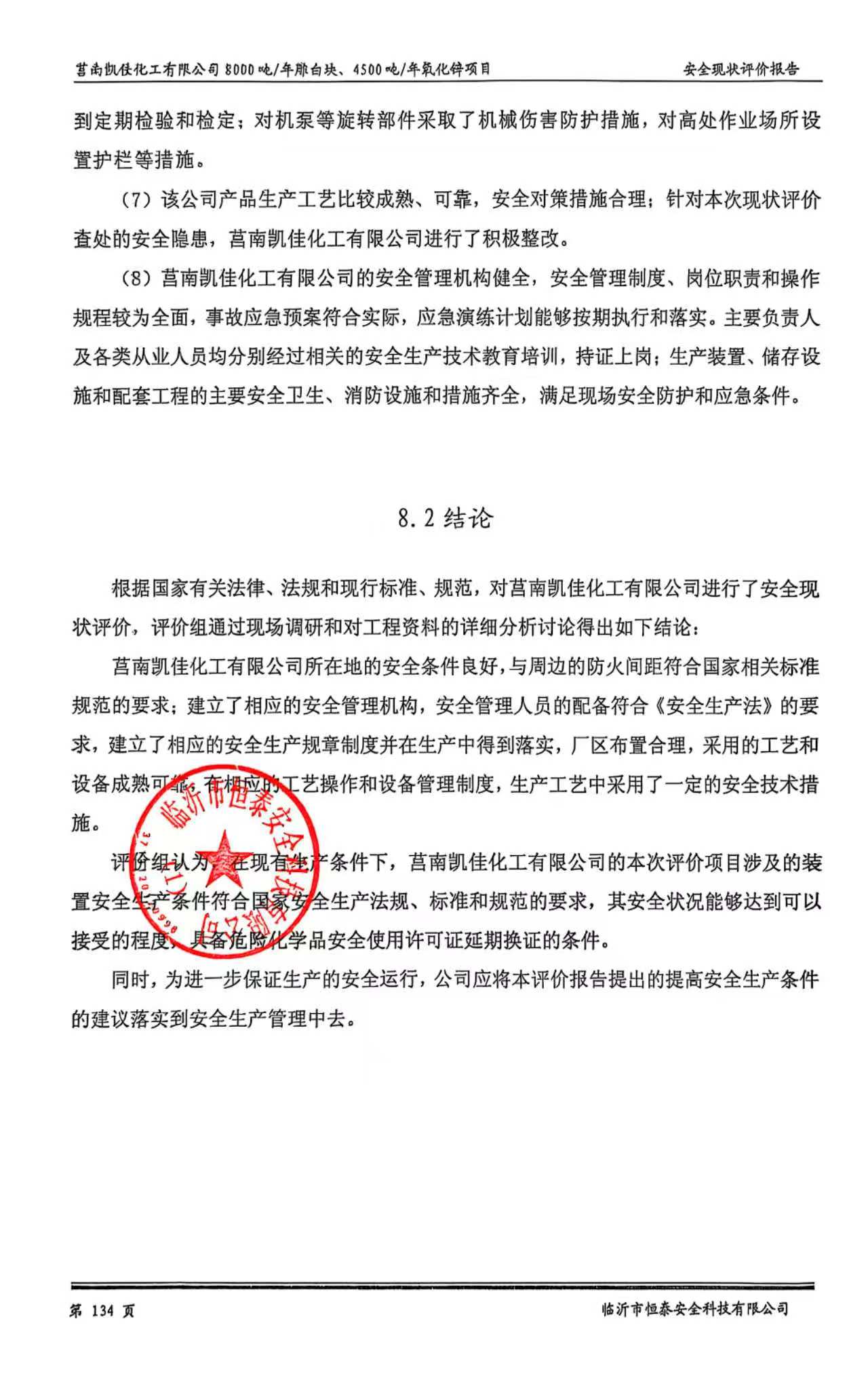 莒南凯佳化工有限公司8000吨/年雕白块、4500吨/年氧化锌项目安全现状评价报告 |